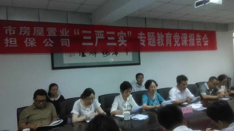 6月26日下午,市住建委黨委委員、副主任程國志來到市房屋置業(yè)擔保公司,專門作了“三嚴三實”專題教育黨課輔導(dǎo)。公司領(lǐng)導(dǎo)班子全體成員、中層骨干、黨員、發(fā)展對象及入黨積極分子30余人參加報告會?! ?br />